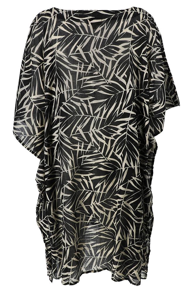 Poncho in cotone stampato con scollo a V decorato con perline e maniche a pipistrello.