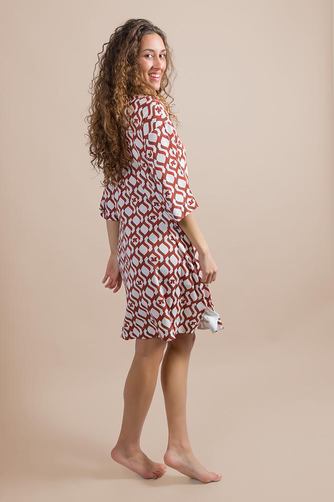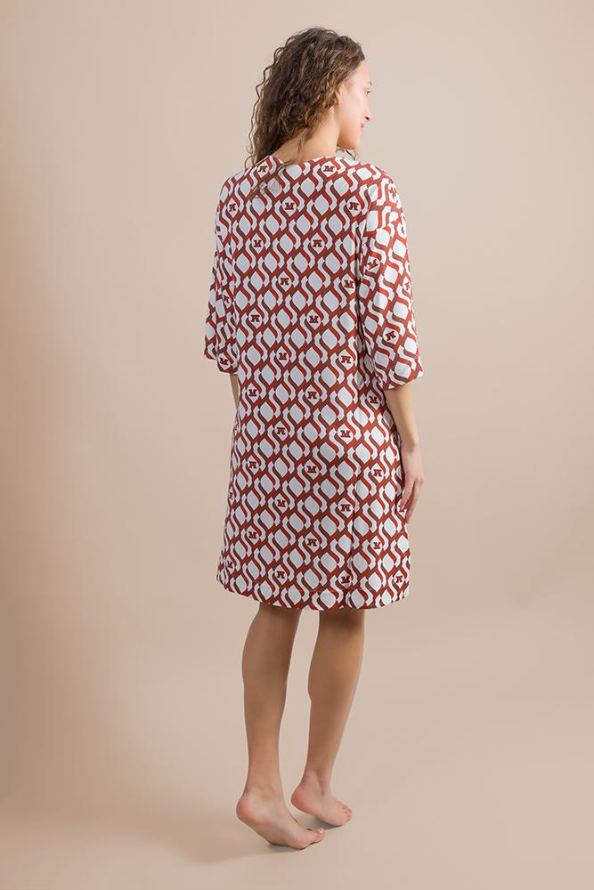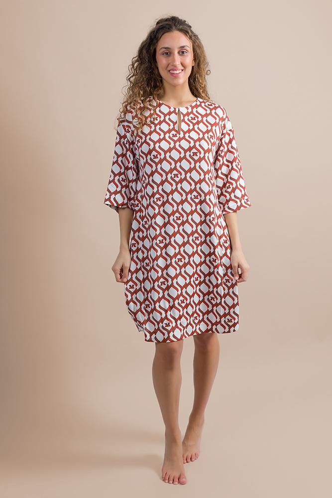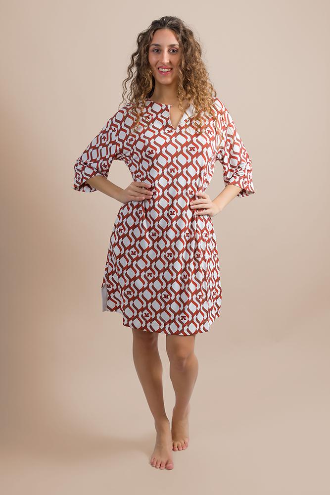 Abito copricostume corto dal design fresco e contemporaneo, perfetto per accompagnarti con stile nelle giornate estive. La linea morbida e confortevole valorizza la silhouette senza costringere, mentre la stampa geometrica dona un tocco moderno e distintivo.