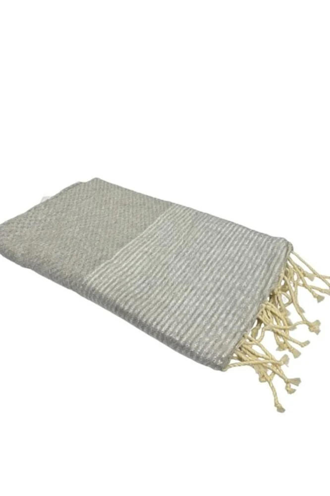 Telo mare realizzato in leggero cotone con frange ai bordi, ideale da portare in viaggio.